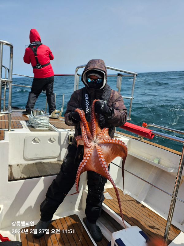 ![]() ![]() ![]() ![]() ![]() ![]() ![]() ![]() 전날내린 눈과비 때문에 떨어진 수온과기온탓에 문어 활성도가 저조했습니다. 그래도 나오면 큰건5키로급 대부분 3~5키로 정도의 좋은 싸이즈입니다. 날씨만 좋아지면 마릿수도 가능해질겁니다. 문어낚시는 멘탈 게임입니다. 끝가지 최선을 다해야됩니다. PS: 버림봉돌채비(노랑고무줄로 채비와 봉돌체결하시면 좋습니다.) 문어입질이다 싶으시면 로드를 숙여주던가, 아니면 라인을 살짝 풀러주어서 문어가 에기를 완전히 가져갈 시간을 주신후에 여유줄 감으시고, 로드를 쑤욱 들어서 무뽑듭이 들어올린후엔 멈추지말고, 낚시대텐션 유지한체로 끝가지 감아올려야 됩니다. *** 강릉 챔피언호 예약 안내 *** 예약문의 : 010-6368-9187 오시는길 : 강원도 강릉시 주문진읍 해안로 1712-4 |